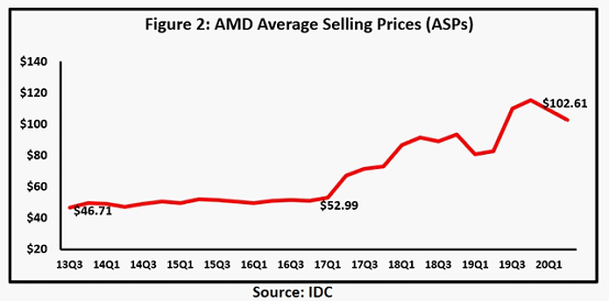 AMD的平均售价来源:idc
